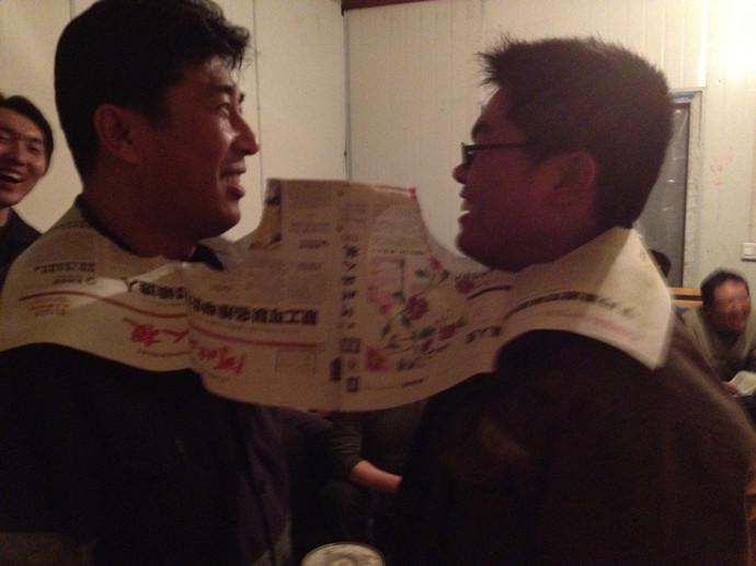 雖然這里只有簡陋的工棚,簡單的飯菜,惡劣的施工環(huán)境,沒有暖氣,沒有電視,甚至沒有晾衣繩(因為很多民工隊住在一起,晾在外面容易丟)……但是這些都沒有影響他們施工的熱情,每天四點多就起床,由于受各種工序的限制,我去以后連續(xù)兩天只能架兩片梁;第三天才架了三片梁,每天都要18點以后收工回到駐地。就是說,加上等活的時間,幾乎每天有14個小時都要在梁場。